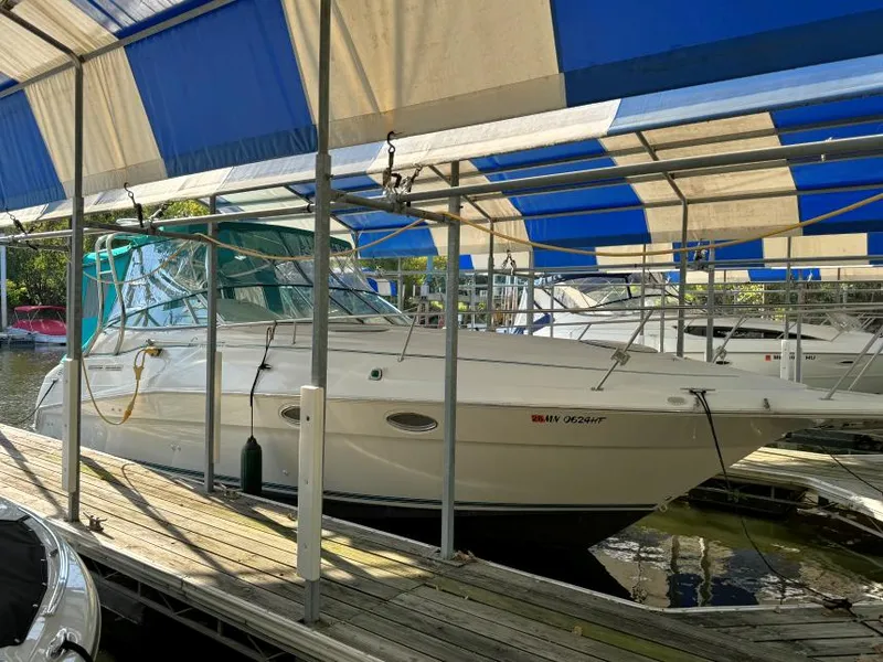 Comes equipped with: Twin Mercury 5.7L 250HP engines w/750 hours, cockpit cover, full enclosures, bimini top, snap in/out cockpit carpet, windlass anchor, remote spotlight, sun lounge filler cushions, Marine Stereo w/Cockpit & Cabin Speakers, cockpit wetbar w/Refrigerator + sink, electric flush head, separate head shower, AC/Heat, full galley w/Refrigerator, microwave, stove, + sink, transom shower, depth finder, VHF radio, and more! This boat has been well taken care of and it shows!!