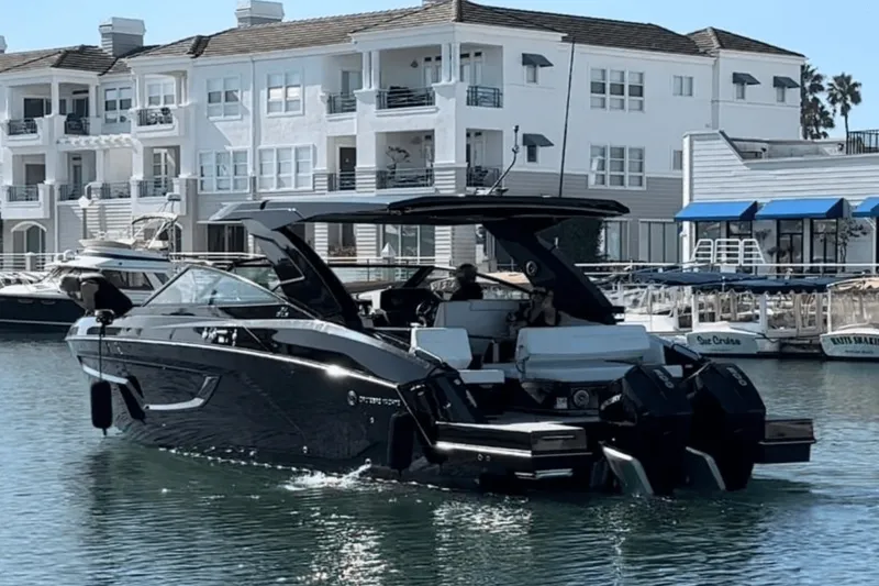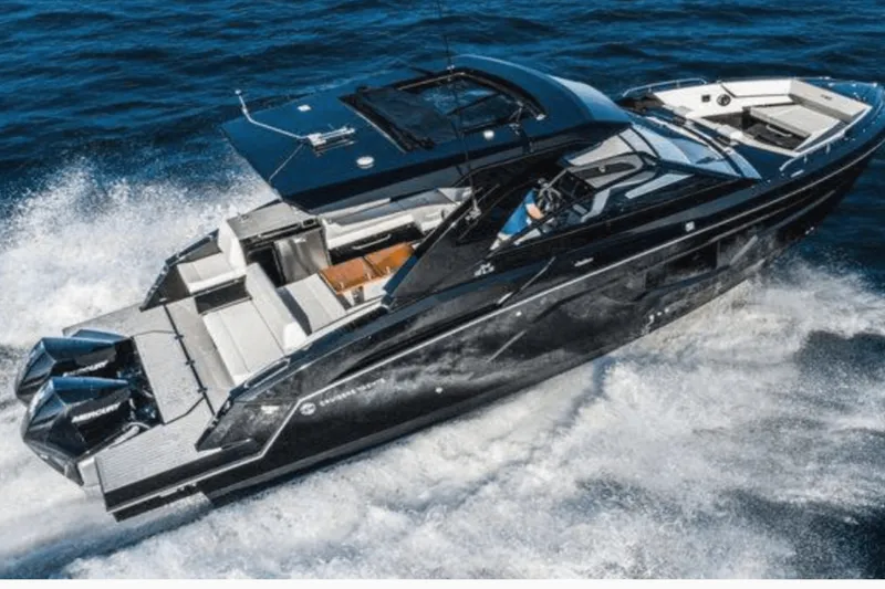 1 owner bought brand new 2023 34 GLS with Mercury V8 300 HP outboard motors with Joystick and Skyhook and Heading hold features. Has the Jet black gelcoat with white cockpit vinyl with black seat covers. Was bottom painted and motors serviced in Nov 2024. Low hours on motors. Also has a custom made black full boat strorage covers to keep it in excellent condition. Its a powerful boat and great for entertaining. Has two cockpit L-shaped seating areas the portside seating has a adjustable back rest, while the larger starboard side converts to a large aft facing sunpad. The bow seating features a table that converts into a sunpad. Rockford Fosgate speakers and remote stereo control in bow, and multiple cup holders. Lower salon fetures a dinnette that convertsinto a berth. The lower galley is complete with a fridge, microwave and TV. Has a Diesel generator with its own seperate fuel tank and Simrad electronics. SeaDek flooring throught out the boat. Black hard top. With sunroof in hard top. Has black electric sure shade over transom seating. Ceramic coating on gelcoat.
