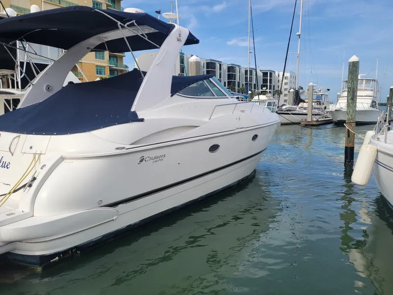 SUBSTANTIAL PRICE REDUCTION! Beautifully appointed, sleek styling and one of the best, expansive interior designs of any Yacht in its class (under 40 ft). The most recent price reduction makes this listing exceptionally attractive. It will not disappoint! New Yacht cover and brand-new extended Bimini canvas over the rear deck sun lounge. Very well maintained, and under used, this 3772 Express has 378 hours on the twin MerCruiser 8.1 HO engines, and a refurbished Kohler generator. All new electronics including Ray Marine Axiom 12, Auto Pilot, Quantum Radar and GPS antenna and sensor. Current owner spared no expense to maximize enjoyment with new Stereo Amp and Speakers, new courtesy lights and wiring, and a new cockpit icemaker. Other replacements include windshield wiper motor and wipers, muffler, forward bilge and sump pumps, batteries, starter motor, CO2 detectors, TV antenna, Air Conditioning and so much more. Service and Parts records, 2021 Survey available to Buyer. The Slip that this Cruisers is moored in can also be available to the buyer. Located in a private Marina on Marco Island, Florida. Seller states that there is no hurricane damage.