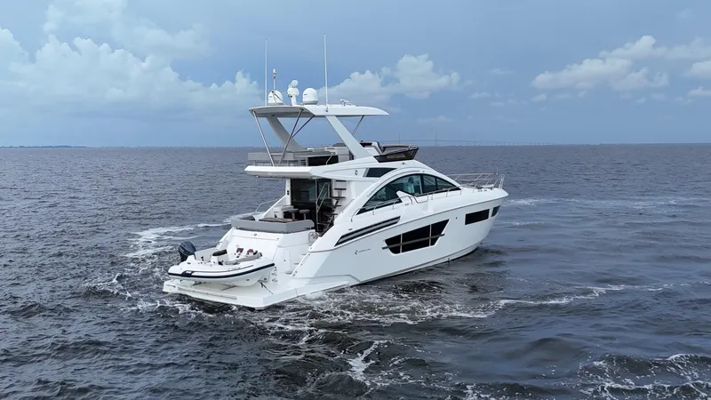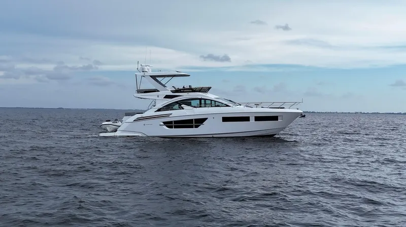 This 2021 Cruisers Yachts 60 Cantius Flybridge offers a dynamic infusion of luxury and style. This single owner vessel has been well maintained and meticulously cared for since hitting the water for the first time. Enjoy the 3-stateroom layout with a FULL BEAM MASTER STATEROOM! Another unique feature on the 60 Cantius Fly is the engine room head space, which clears 5 and 1/2 feet. Never worry about tight spaces down below in the engine room again