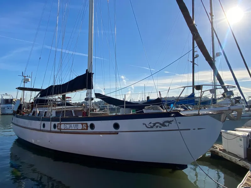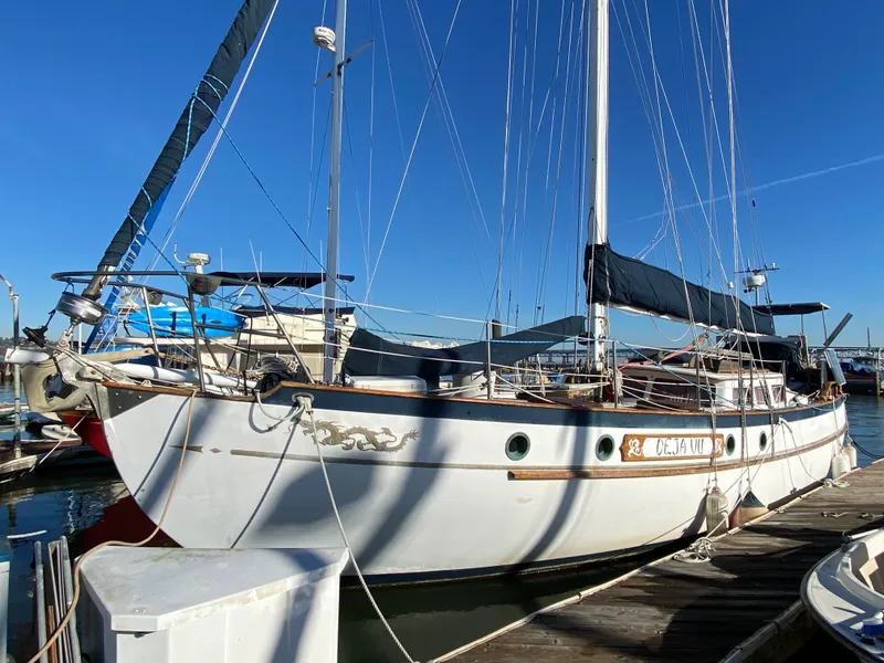 "Deja Vu" was just hauled out on 7/6/2023 for a new bottom, at which point the bow thruster motor, main halyard, thru-hulls and sacrificial anodes were replaced. Cutter rigged, 3 stateroom, 2 head layout. Custom retractable bowsprit for asymmetrical spinnaker with furling system. Bow thruster with 24vdc solar panels for thruster batteries. Set up for singlehanding, most all rigging hardware are SS Garhauer marine blocks and harken winches. (4) 100 watt solar panels, custom Flemming servo/pendulum windvane. 400w solar system charges two house banks. All batteries are AGM, separate starter battery. All Raymarine Legacy electronics at dual helm stations including ST-50 speed, depth, wind, ST-60 autopilot with wireless remote, SL-70 dual station with chart plotter and repeater displays. Dual GPS and dual VHF-FM. Sail inventory includes Asymmetrical spinnaker, 120 Genoa, Yankee, Stay and Main, Storm Sail and Trisail. Lots of spares and cruising kit/inventory. She is ready for her next adventure, where will you take her?