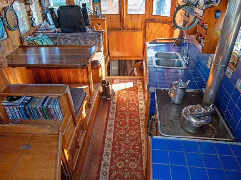 While walking aboard this vessel I get the sense of quality craftsmanship, and old tall ship style. Every knob, door, cupboard, table, etc. feels solid and well made. As much character and overall regal look, this boat is meant to be used. Being used in the past as a charter, I can see taking a adventurous voyages to Alaska and beyond.