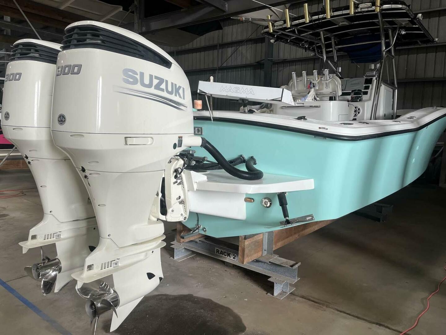 The boat is powered by twin 2019 Suzuki 300's with fly by wire controls. Roughly 400 hours on these engines with tons of life left. The vessel has a 200 gallon main fuel tank with a 75 gallon reserve. The boat comes with a full eisenglass enclosure for the console.