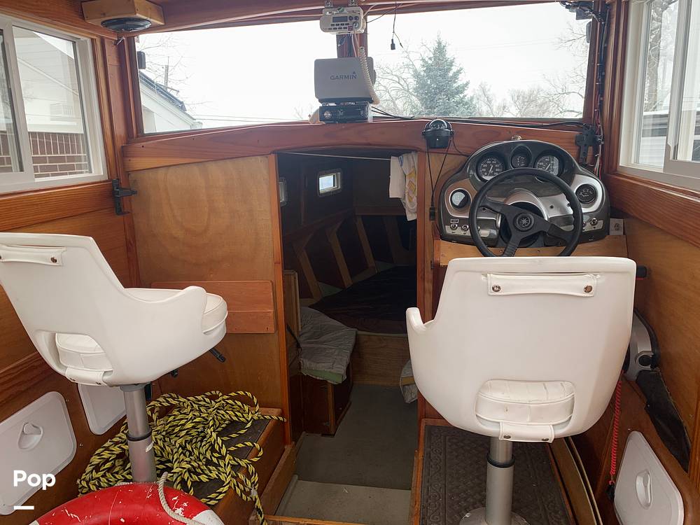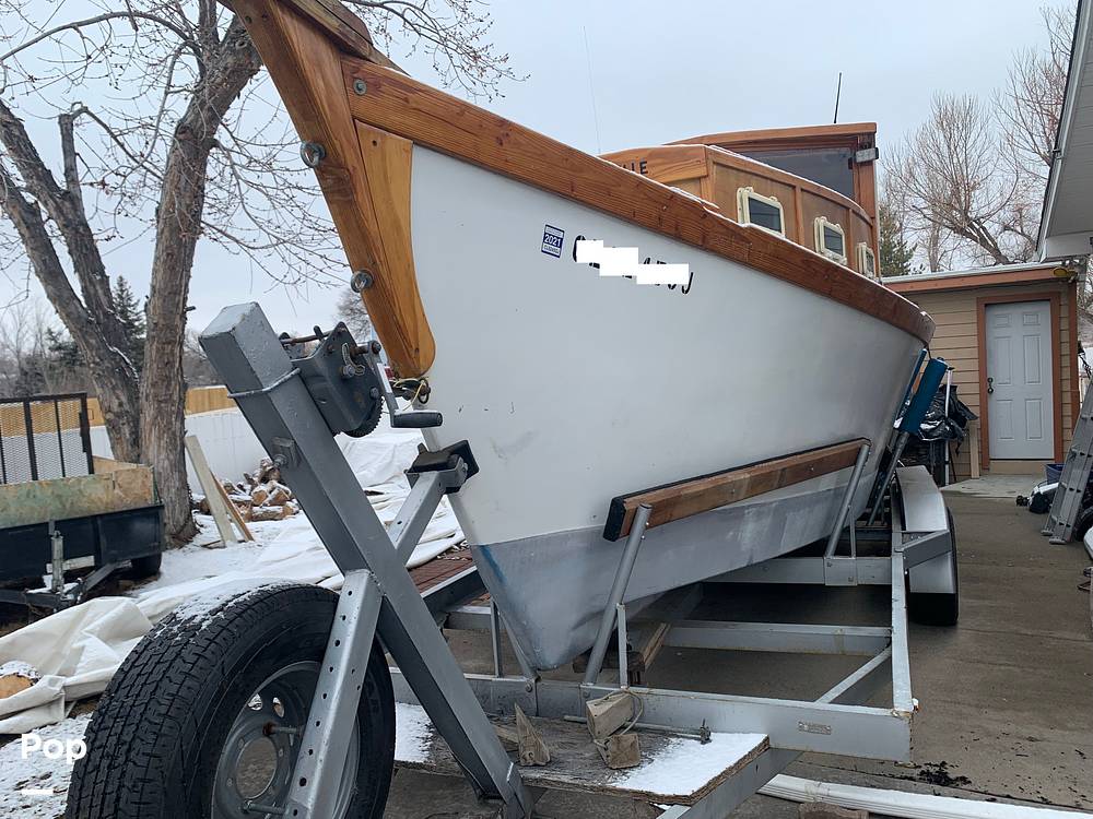 This boat features an upgraded/larger outboard engine than what is needed for this boat to cruise across the water. The motor is mounted in a traditional dory well where it is easy to maintain and tilts up.