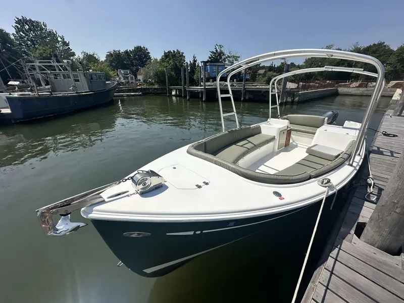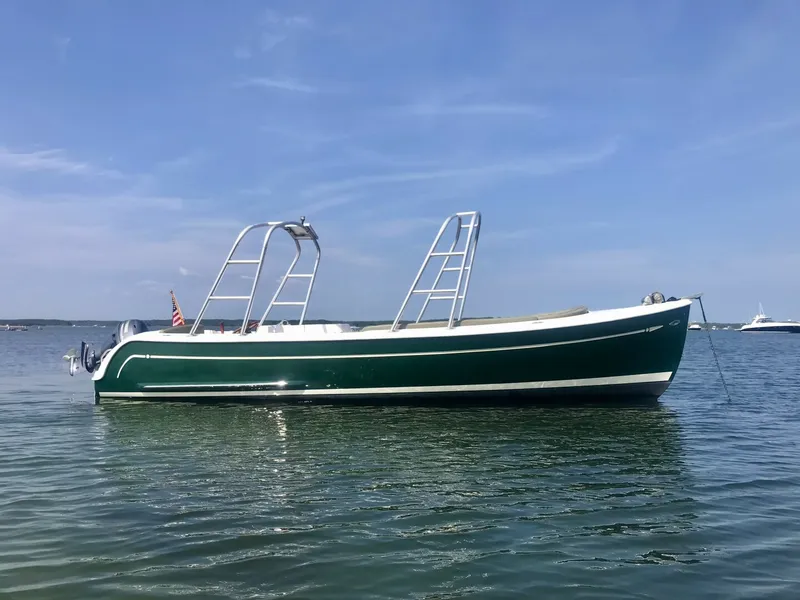Meet your new favorite and easy way to get on the water! This launch-style beauty with a classic Downeast hull design is the ultimate coastal cruiser. With seating for 12+ guests, she’s the perfect beach boat; roomy, stylish, and ready for adventure. Powered by Yamaha 4S with ~50 hrs on her!