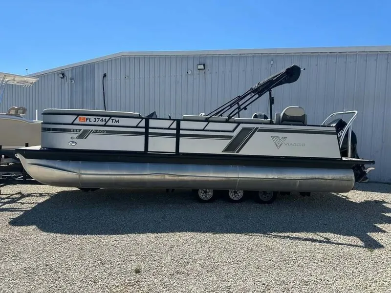 2023 Viaggo Tritoon 22R with a Suzuki 250 with only 65 hours The Viaggio Pontoon 22R (often part of the Lago Series) is a 22-foot pontoon boat designed specifically for fishing and family cruising. The "R" designation signifies its specialized rear fishing layout, which features a dedicated fishing station at the stern while maintaining traditional lounge seating in the bow.