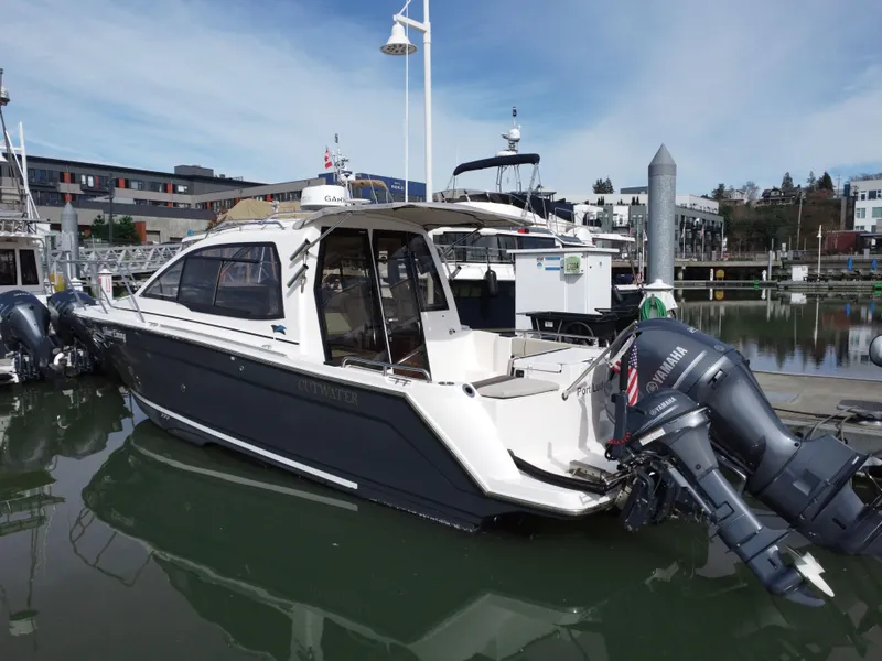 "Silver Lining" is 2021 Cutwater C-24 Coupe which was originally purchased from Bellingham Yachts in fall of 2020. It was sold again by BYS in January of 2022 and kept in Port Ludlow. The current owner recently purchased a newer boat with a slip, so are selling their well-loved Cutwater. They used the C-24 locally to fish and made a few voyages into Canada. The boat has been on the hard since September of 2024 but she's been cleaned up and she's ready to run!