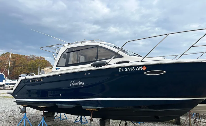 The best of both worlds! Whether you like to cruise the bay or drop a line the Cutwater 24C has something for you. A well designed cockpit equipped with a grill, ski pylon, and rodholders gives you all you need for a day on the water. The pilot house design keeps you protected and allows you to extend your season in all conditions. A well equipped galley and spacious sleeping area allows you to comfortably overnight. This beautiful vessel has been lift kept and gently used by only one owner. The Yamaha 250hp outboard engine only has 53 hours. On her most recent trip, this vessel burned only 17 Gal/hr at 28kts! This is a tremendous amount of value over purchasing new.