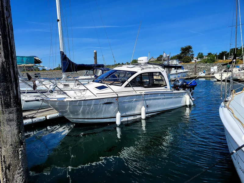 Comfort and Amenities: The coupe layout provides protection from the elements, a well-designed helm station, and modern conveniences such as a marine head and refrigeration.