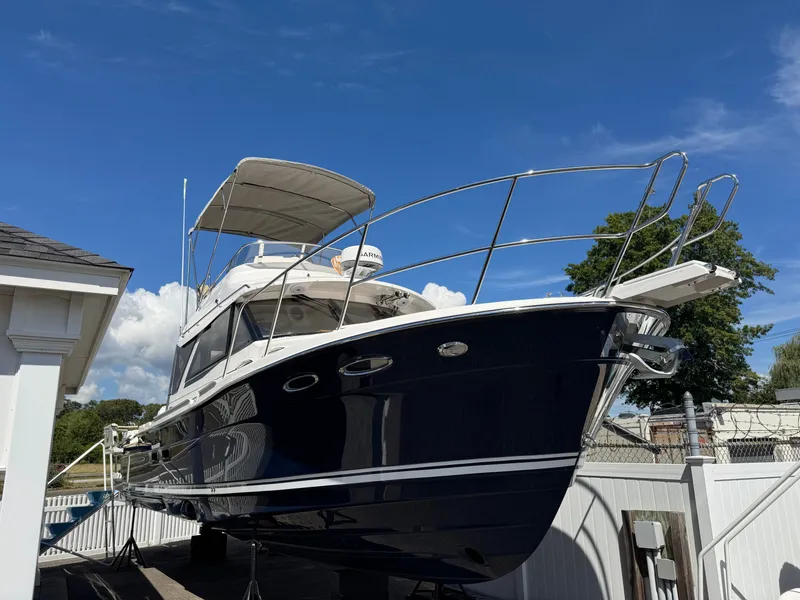 Cutwater C-32CB Hull Color: Midnight Blue Engine: Twin 300 HP Yamaha outboards w/ Helm Master joystick and electric steering (DES) Yamaha-Autopilot Garmin dual 8612xsv chartplotters (main helm) Garmin 8612 chartplotter (bridge) w/sonar Garmin 18xHD3 radar Thruster wireless remote Canvas: Aft Cokpit sun shade with sunset shade Canvas: Optios Command Bridge Bimini Top w/ boot Air Conditioning Rev Cycle Heat Anchor Package 22# anchor-50' HT chain-200' line Downrigger plates and plugs Inverter LED Lights Lithium (LiFePO4) battery upgradeMacerator Discharge Rocket Launchers: Arch with rod holders Safety kit, fenders, lines, flares, fire ext, first aid kit, life jackets, boat hook 220W Solar Panel Stove, dual burner electric, convection oven/ microwave combo Swim Platform Rails