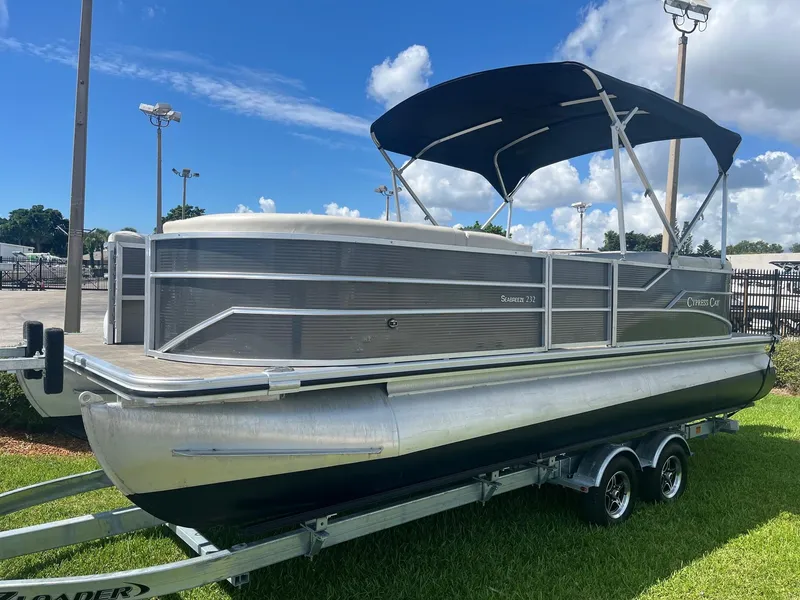 This 2022 Cypress Cay Seabreeze 232 is a family-friendly pontoon boat with an overall length of 23 feet, this boat is crafted from durable aluminum, ensuring both strength and lightweight maneuverability on the water. Powered by a 90 hp Mercury outboard engine, it promises a wonderful experience, perfect for leisurely cruises or adventurous outings. The Seabreeze 232 is designed for comfort and enjoyment, featuring ample space for gatherings with family and friends. Its thoughtful design ensures a smooth ride, making it ideal for both relaxing days on the lake and lively social events. This used boat is a fantastic opportunity to own a boat that embodies the spirit of adventure. Whether you're fishing, cruising, or simply soaking up the sun, the Cypress Cay Seabreeze 232 is ready to elevate your boating experience.