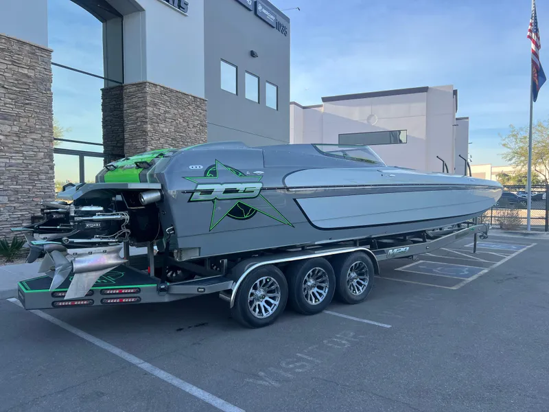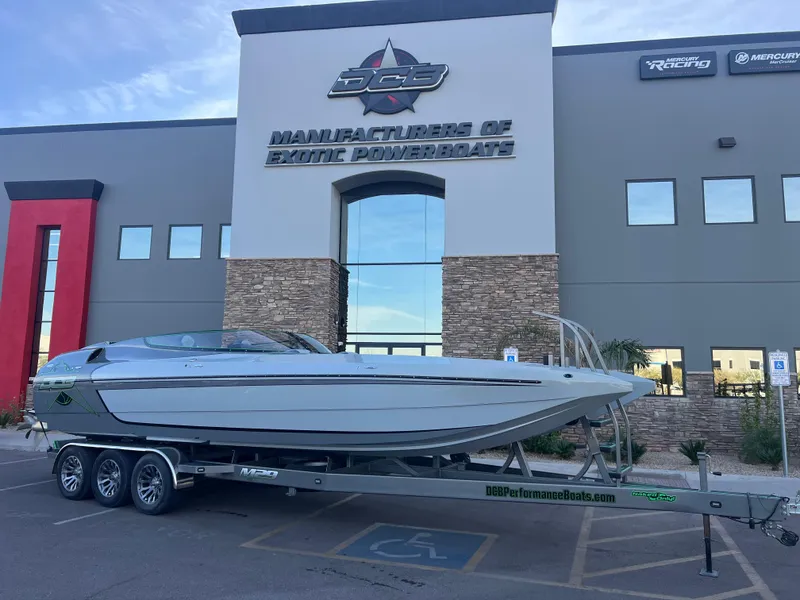 2016 DCB M-29 Mid-Cabin Open Bow with twin 825 EFI TCM black engines with only 115 hours, IMCO stand-off boxes, IMCO quad-ram transom assemblies, IMCO SCX-4 drives with Mercury CNC Cleaver propellers, TCM adjustable water pick-ups, Livorsi Vantage View gauges with digital integrated screens, Livorsi digital trim indicator, TCM tall sea-strainers, Upgraded gel-coat, freshly done full cut and buff with any and all gel imperfections handled and repaired at DCB, Custom rear fiberglass step with matching SeaDek, Isotta steering wheel, IMCO full hydraulic steering with S/S tilt helm, Cockpit cover and bow cover, Phase 3 stereo, Custom interior with soft touch and alcantara interior, Fully finished mid-cabin area, custom gel-coated matching seat backs, New color matched custom SeaDek cockpit kit, Matching SeaDek on the trailer and drive guard, Triple-axle Extreme trailer with custom ladder, drive guard, 18" wheel and tire package. This boat was just completely gone through and fully serviced here at DCB with an open check book, the boat is absolutely turn-key ready with zero issues.