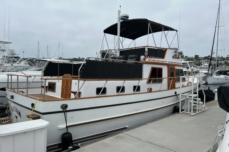 Defever 41 Trawler in fantastic condition. Perfect Southern California and Mexico Coastal cruiser or live aboard for couples and small families. Solid fiberglass hull construction and long keel ensures a safe and stable platform. Strong running and fuel efficient Perkins diesel cruises at a swift 12 knots. Brand new bow and stern thrusters with dedicated battery banks allow for smooth operation getting in and out of the slip. Alegria has a double cabin layout with 2 heads (aft head features tub/shower). Extensive seating layout both inside and out. This turn key trawler is dialed in and ready to enjoy.