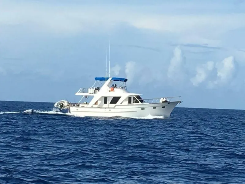 Nepenthe is a 1990 48' DeFever trunk cabin trawler. She offers low-hour Perkins 185 HP main engines, low-hour Westerbeke 12.5 kW generator, dual Racor fuel filters for each main engine with remote gauges at the lower helm, Side-Power bowthruster, Raritan Electro-Scan blackwater treatment system, Dry Bilge system, 3 stateroom 2 head layout with each head having an enclosed shower and a full-beam master stateroom aft with a centerline queen size berth. With her 18' height from the waterline, she is Great Loop capable.