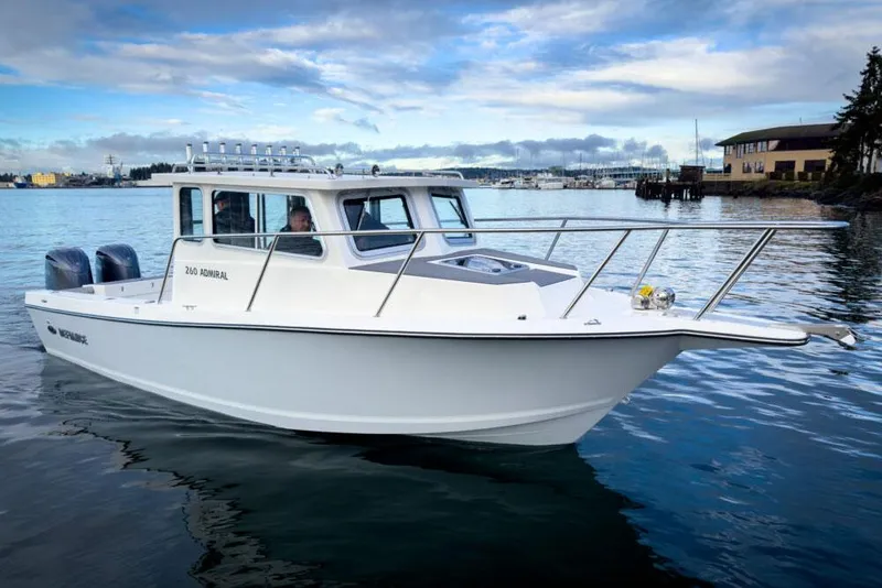 The 260 Admiral combines the stability of a great hull design with the comfort of a large warm and dry cabin. With plenty of deck space, the 260 Admiral delivers unmatched fishing functionality. Built and Designed for the offshore sportfishing enthusiast seeking to fill their freezer with Tuna ,large Pacific Halibut ,massive Alaskan king Salmon or Stripers off the East Coast.The 260 Admiral offers comfortable fishability for 6 adults and comfortable seating for 6 adults. A extended rear canopy and self-bailing deck complete the package.