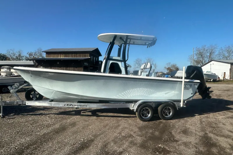Xplor Boatworks Delta D245 powered by a white Mercury 300XL.
