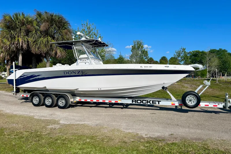The Donzi 32 ZF Open is renowned as a quality built Center Console with the speed and range to travel offshore in pursuit of remote fishing grounds. Built with a stepped hull for ride comfort. Quality touches are easy to find on the 32 ZF, and fit and finish is well above average. High Performance and comfort features abound. All systems - pumps, switches, lights etc. are functioning and in top condition. Full boating gear included with sale - dock lines, fenders, anchors, safety gear. This is a complete package in ready to go boating condition.