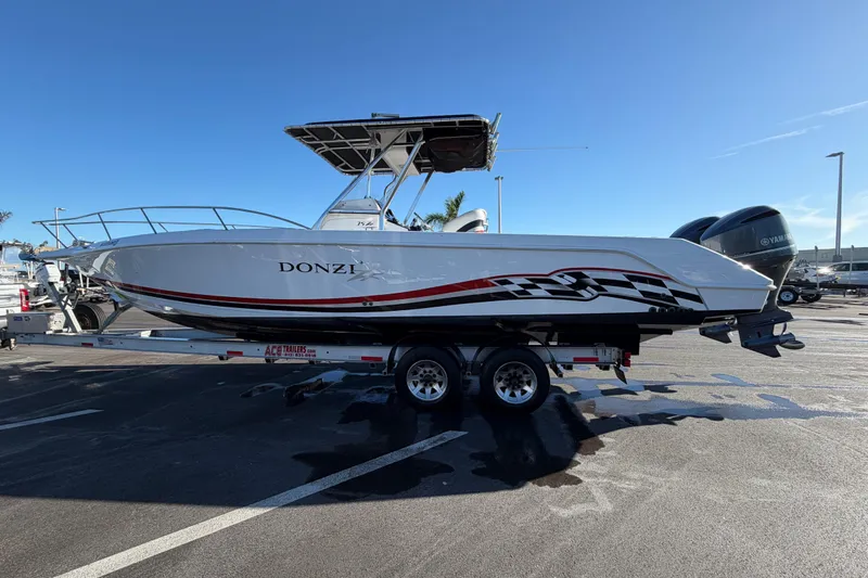 The Donzi 35 ZFC enjoys a hard-earned reputation as one of the most distinctive and sought-after high performance center consoles on the water. With its sleek styling, accommodating layout, and breathtaking performance, the 35 ZFC easily accommodates a wide range of on-water activities.It features a comfortable cockpit with richly upholstered drop-down bolster seats and wraparound cockpit coaming bolsters. There's an enclosed head compartment with nearly six feet of headroom concealed beneath the center console, equipped with a freshwater sink, shower, and head. A curved, tempered-glass console windshield provides protection while maintaining great looks. Options include an aluminum T-top with electronics box, spreader lights, and integrated overhead PFD storage.This model was designed as a versatile high-performance center console, often used for saltwater fishing, day cruising, and occasional overnighting thanks to the cuddy cabin area.
