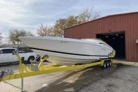 This 2002 Donzi 38 ZX Daytona is a true offshore performance classic-aggressive lines, Daytona graphics, and the power to match. Powered by twin Mercury Racing 575 SCI engines with just under 500 hours, this 38 ZX delivers big-block sound, strong acceleration, and the performance Donzi is known for. Both engines were recently serviced less than 20 hours ago.