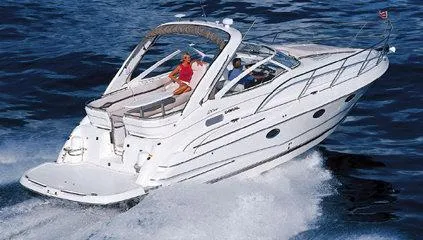The exhilarating, aerodynamic design of the 330se is built on Doral's next generation hull and deck assembly for a high performance smooth as silk ride. In the cabin owners will find a cabinet with carpet finish, Corian glass holder, laminated cabin furniture, AM/FM radio, CD player and 4 speakers, a U-shaped laminated cabinet and so much more. The head features a Corian ceiling light base, fiberglass shower and galley top, dash access door, fold away shower seat, full height mirror and a porthole for ventilation. The galley features a built-in refrigerator, double burner stove, microwave oven, galley top granite aspect finish with pressurized water system and varnish wood marine style floor. Standard features on deck include a built-in swim platform with telescopic ladder, non skid deck walkaround including access steps and foot stop, and a fiberglass retractable radar arch with built-in lights and night lighting. Enjoy the many benefits of a double helm seat with standing driving position system enabling great visibility from the helm while either sitting or standing. As part of the Platinum option package the cabin entrance door screen is perfect for letting the sunlight in and keeping the bugs out.