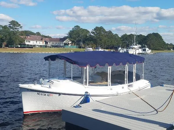 Like New with full length bimini and enclosure - up to 12.5 hours cruise time on a single charge!
