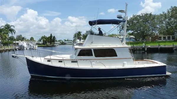 Introducing the elegant "SALTY DOG," a classic 1987 Duffy Flybridge Cruiser that embodies the charm of Downeast design. With an overall length of 35 feet, this vessel features a robust fiberglass hull with a displacement shape, ensuring stability and comfort on the water. Powered by a reliable 375 hp Caterpillar 3208 TA diesel engine, it boasts impressive cruising speeds of 14.5 knots and a maximum hull speed of 18.5 knots, making it perfect for leisurely excursions or spirited adventures. The interior offers cozy accommodations with one cabin and one head, providing comfort for overnight stays. Equipped with an electric windlass, this boat enhances your docking and anchoring experience. The "SALTY DOG" is not just a boat; it's a gateway to unforgettable maritime memories, combining classic aesthetics with modern functionality for the discerning boater.