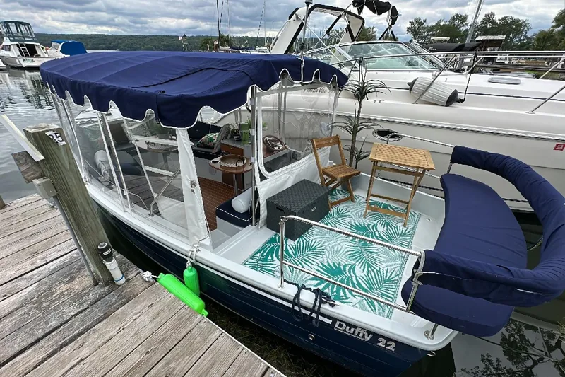 The Duffy Sun Cruiser 22 was designed to enjoy the best of both worlds - both inside and out. Comfortably cruise the spacious fully enclosed interior or step outside onto the open cockpit and soak up some sun! It holds 12 adults comfortably.