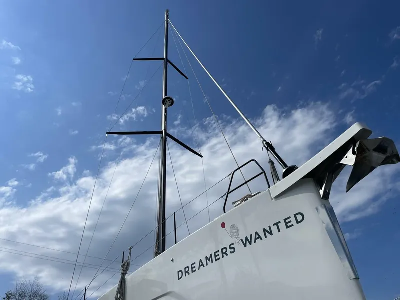 - Sloop rig with double spreader aluminum spar with carbon wrap