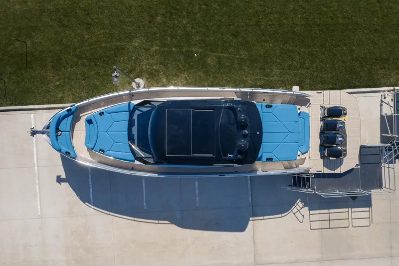 Performance & HandlingPower comes from quad Mercury Verado V12 600HP outboards, delivering exhilarating acceleration, confident offshore capability, and precise maneuverability. A Side Power electric bow thruster enhances docking control, while advanced insulation throughout the hull and engine spaces ensures a quiet, refined ride even at speed.