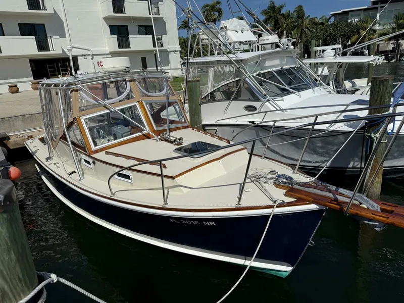 This traditional classic timeless design is seaworthy, comfortable, pleasurable, and stylish with a distinctive signature look and pedigree. With a sweeping shear line, raised trunk cabin and wood framed windshields, the Dyer 29 has been turning heads and providing content ownership for decades.