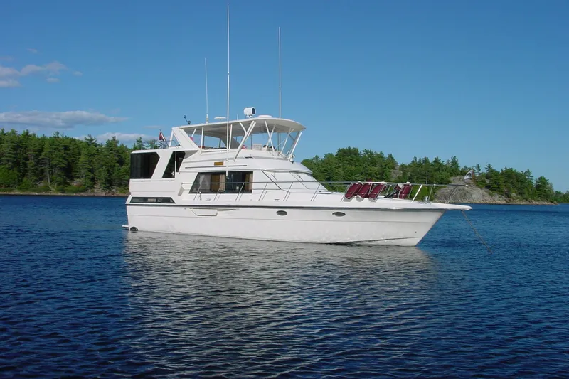 Classic 50' aft deck motor yacht, "Eagles Nest" offers spacious accommodations, a beautiful teakwood interior, and comfortable staterooms for family or guests. The large salon, flybridge, and aft deck provide excellent entertainment and lounging space, making her an ideal platform for Great Lakes cruising.