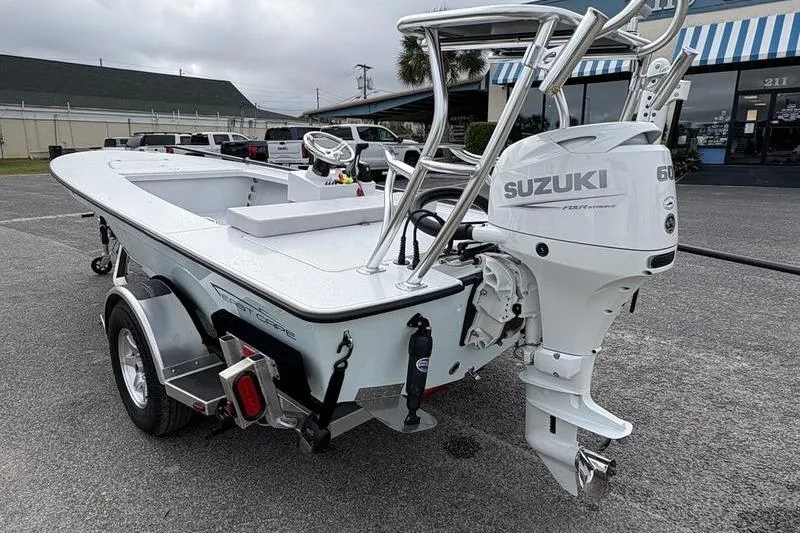 The East Cape EVO 17V offers unparalleled versatility and performance for anglers navigating various water conditions. This boat is powered by the Suzuki 60 hp with 9 hours and warranty until 5/7/2030. It also comes with an Aluminum Ram Lin Trailer with upgraded rims.