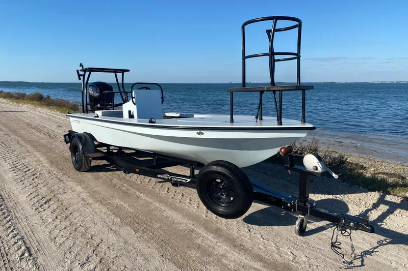The Skiff Broker proudly presents this 2024 East Cape Evo 18V, a meticulously maintained, full Kevlar-layup skiff powered by a Mercury 115 ProXS with only 104 hours and factory warranty coverage through February 2027 (extendable). This is a true do-it-all technical poling skiff that excels in both shallow flats and choppier open waters.