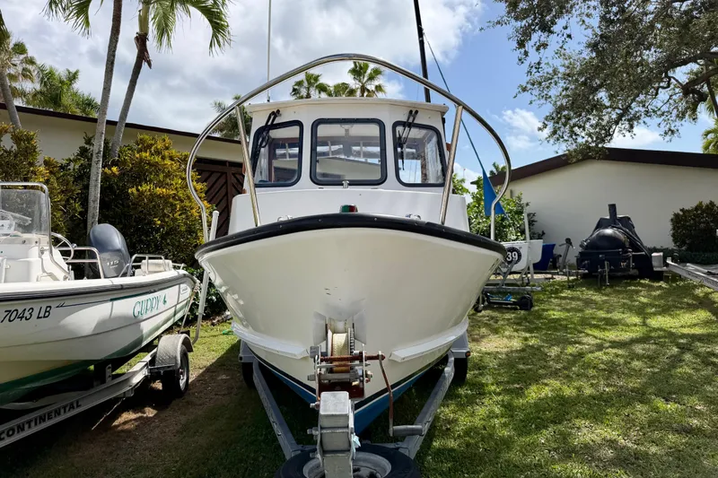 Proper maintenance and care each season is quickly evident. Durable, popular Eastern 22 lobster hull. Surround canvas/windows added to provide a full helm enclosure. Comfortable, dry running boat. 90 HP Honda four-stroke is plenty of power. Instruments include West Marine VHF and Ritchie compass. The GPS and depth sounder are dated and no longer operate.