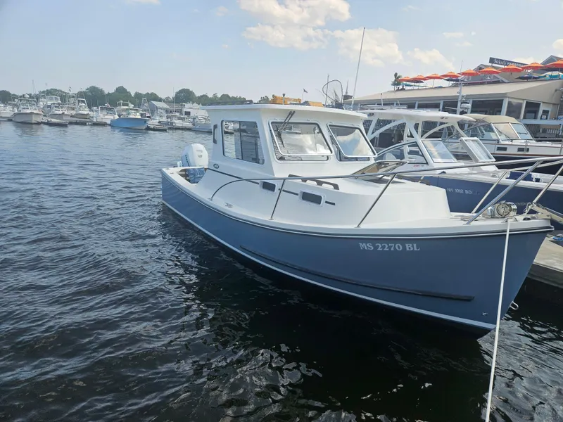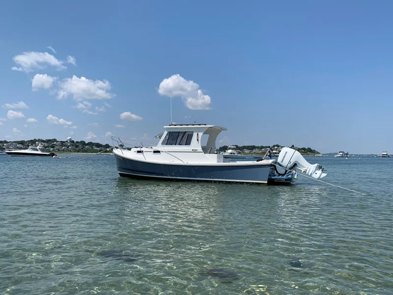 Introducing the stunning 2019 Eastern 248 Explorer, a remarkable Downeast vessel that combines elegance with performance. With an overall length of 24 feet, this boat is designed for both comfort and adventure. The fiberglass hull ensures durability while providing a smooth ride on the water. Powered by a reliable Honda 4-stroke 150 outboard engine, this boat delivers an impressive cruising speed of 22 knots and a maximum hull speed of 30 knots, making it perfect for thrilling excursions. The stainless steel 3-blade propeller enhances efficiency and responsiveness. Accommodating up to six passengers, the 248 Explorer features one cabin and one head, ensuring a comfortable experience for all on board. An electric windlass adds convenience to your anchoring needs. Whether you're exploring coastal waters or enjoying a day out with family and friends, the Miss K is the ideal companion for unforgettable adventures.