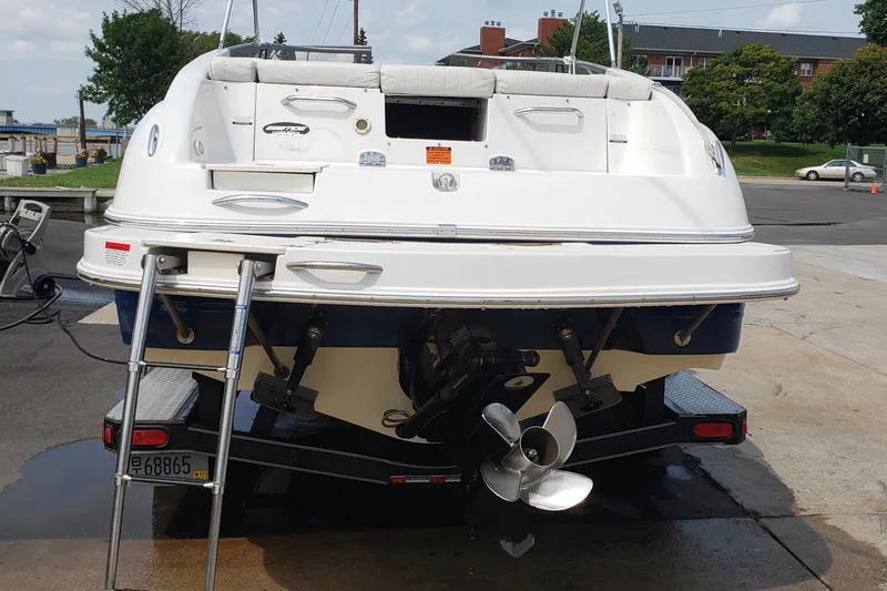 Price just reduced and on consignment at Spellman's Marina in Oshkosh, Wisconsin, is this beautiful and clean boat that has been stored indoors year-round. 2006 Ebbtide 2300 BRL, a stunning bowrider that combines elegance with performance. With an overall length of 23.17 feet, this vessel is designed for both comfort and adventure on the water. Powered by a Mercruiser 6.2 L MPI Bravo with thru-hull exhaust. Crafted from durable fiberglass, the hull ensures a smooth ride and longevity, making it a reliable choice for boating enthusiasts. The 2300 BRL features an inviting layout, perfect for socializing and enjoying time with family and friends. Its design emphasizes open space, allowing for a relaxed atmosphere while cruising. The boat is equipped with essential features that enhance the boating experience including extended swim platform with fold down ladder, table for bow area, back seat fill-in cushions, docking lights, snap-in carpeting, pump-out porta-potty, Bimini top, bow and cockpit covers, AM-FM CD player stereo, sirus radio, ship to shore weather radio with antenna, dual batteries with switch, and a mooring cover. This used model offers a fantastic opportunity to own a well-maintained bowrider that is ready for your next aquatic adventure. A Rolco Mfg. tandem trailer with aluminum step plates, surge brakes and spare tire with carrier that is in great shape is also part of this package.