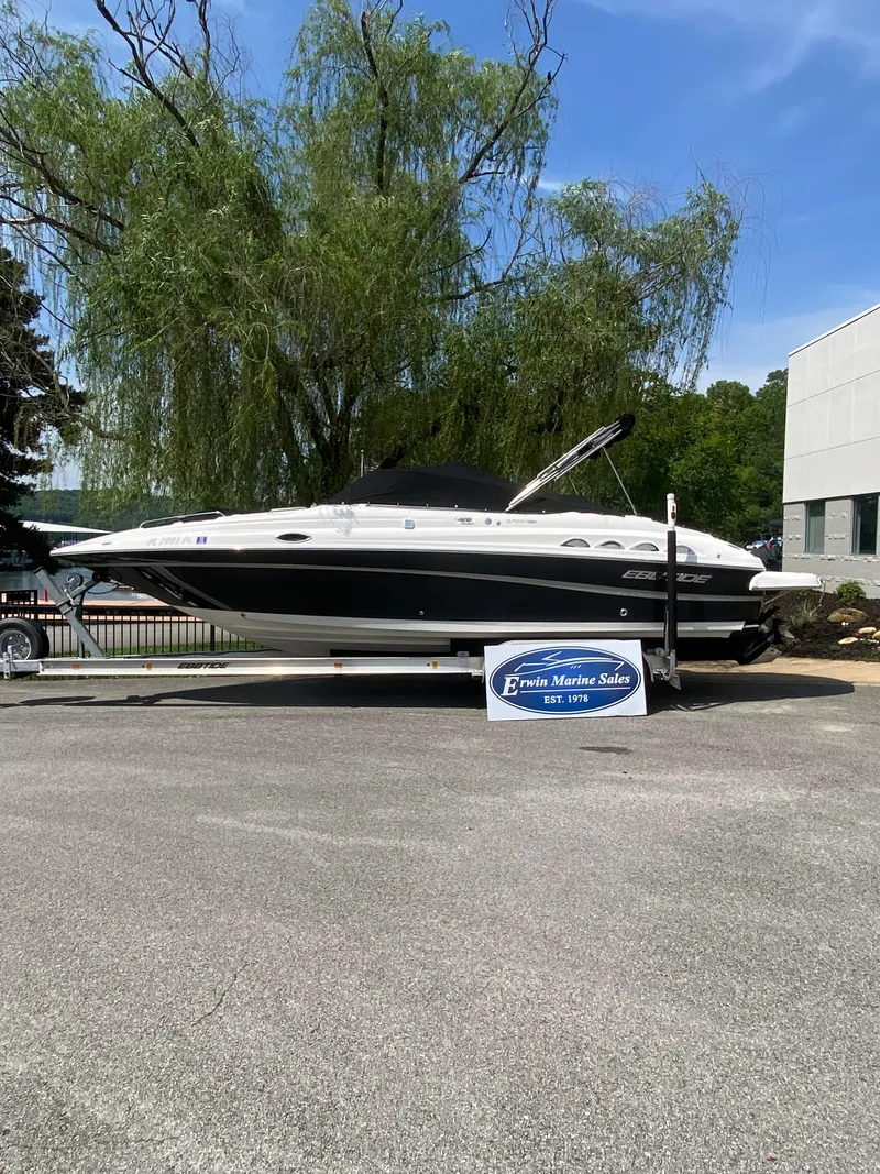 This is a fully loaded 2700 Ebbtide with only 183 hours on a Mercruiser 496 Mag HO Bravo III (425php). It is loaded with Full Bow Rider with Center Cabin Layout; Dockside Air Conditioning; Pump Out Head Newer Dash & Gauges with 4 USB Charging Ports; Full Cover that covers Hull Sides; Lenco Trim Tabs; Cockpit Carpet & Full Cockpit Enclosure; 2015 Tandem Axle Magic Tilt Trailer.