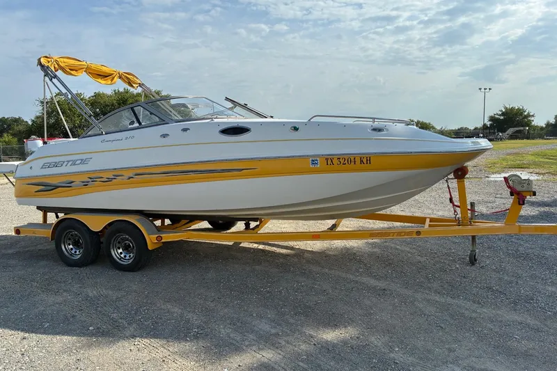 Introducing the 2005 Ebbtide Campione 210, a stunning bowrider that perfectly blends performance and style. With an overall length of 21.4 feet, this vessel is designed for both comfort and agility on the water. Crafted from durable fiberglass, the hull ensures a smooth ride while enhancing the boat's aesthetic appeal. Powered by a robust Mercury 5.0 MPI engine, delivering an impressive 260 horsepower, this boat promises exhilarating speed and responsiveness. Whether you're cruising with friends or enjoying a day on the lake, the Campione 210 offers an inviting space for relaxation and fun. This used model has been well-maintained, showcasing its enduring quality and reliability. Ideal for those seeking adventure, the Ebbtide Campione 210 is ready to create unforgettable memories on the water. Experience the joy of boating with this exceptional vessel that combines performance, comfort, and timeless design.