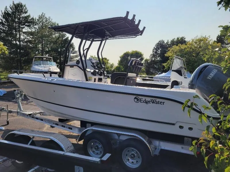 Introducing the 2025 Edgewater 208 WATCHMAN, a stunning center console boat that combines performance and style. With an overall length of 20 feet, this new vessel is crafted from durable fiberglass, ensuring longevity and resilience on the water. Powered by a robust Yamaha F 150 XC outboard engine, delivering an impressive 150 horsepower, it promises exhilarating rides and dependable performance. The 208 WATCHMAN is designed for versatility, making it an ideal choice for both leisurely outings and adventurous excursions. Its sleek design and thoughtful features enhance the boating experience, while the spacious layout allows for comfortable movement on board. This boat is perfect for those who appreciate quality craftsmanship and innovative engineering. Whether you're fishing, cruising, or enjoying a day on the water, the Edgewater 208 WATCHMAN is ready to elevate your maritime adventures.