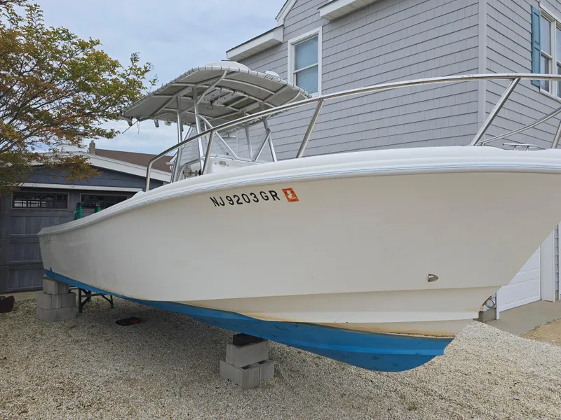 The 2001 EdgeWater 225 is a center console fishing boat known for its offshore-proven hull and innovative design. It features a split, walk-through bow with large storage boxes, a sink and live well built into the transom corner, and ample rod storage. The 225 is designed with the angler in mind, offering features like a large fishbox, a rocket launcher with four rod holders, and coaming pads along the sides.