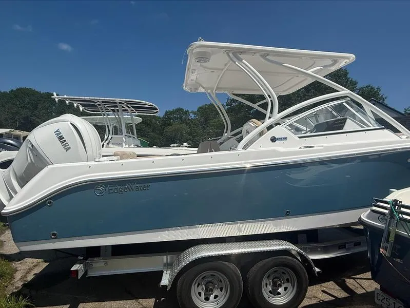 Introducing the stunning 2025 Edgewater 248CX, a remarkable dual console boat that combines elegance with performance. With an overall length of 24 feet, this new vessel is crafted from durable fiberglass, ensuring both strength and a smooth ride on the water. Powered by a robust Yamaha F 300 NSB2 engine, delivering an impressive 300 horsepower, the 248CX promises exhilarating speed and agility. This boat is designed for those who appreciate quality and innovation, featuring advanced equipment that enhances the overall boating experience. The Edgewater 248CX is perfect for family outings or fishing adventures, offering ample space and comfort. Its thoughtful design caters to both leisure and performance, making it an ideal choice for enthusiasts seeking a versatile and stylish vessel. Experience the joy of boating with the Edgewater 248CX, where every detail is crafted for your enjoyment on the water.