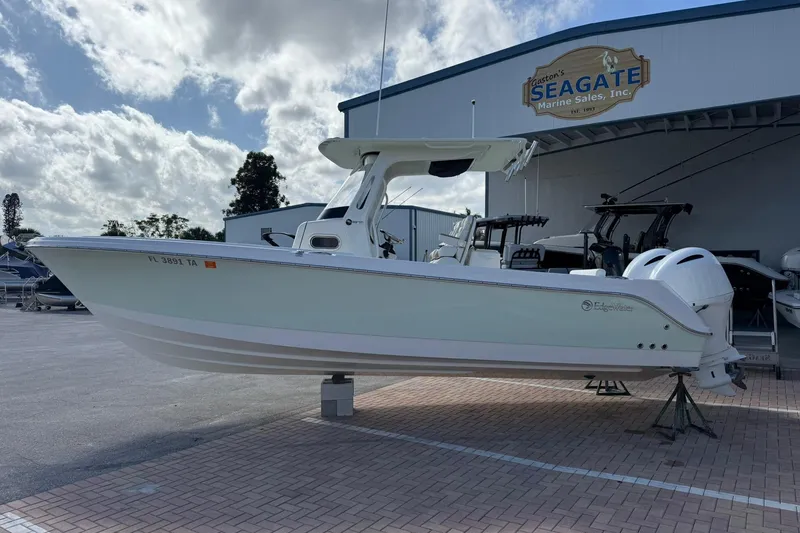 Pre-Owned sea foam green 2021 EdgeWater 262CC. This boat overall is in good condition for its age and we have all service records in hand. There are a couple small knicks and scuffs here and there but extremely minor. The upholstery on the boat is in immaculate condition.