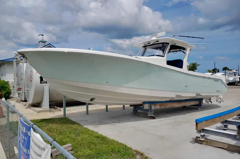 This 2021 EdgeWater 370CC Center Console has been meticulously maintained, dry storage kept since new, and features no bottom paint. Powered by triple Yamaha 300hp engines with remaining warranty, this boat combines serious offshore capability with premium comfort and finish quality.