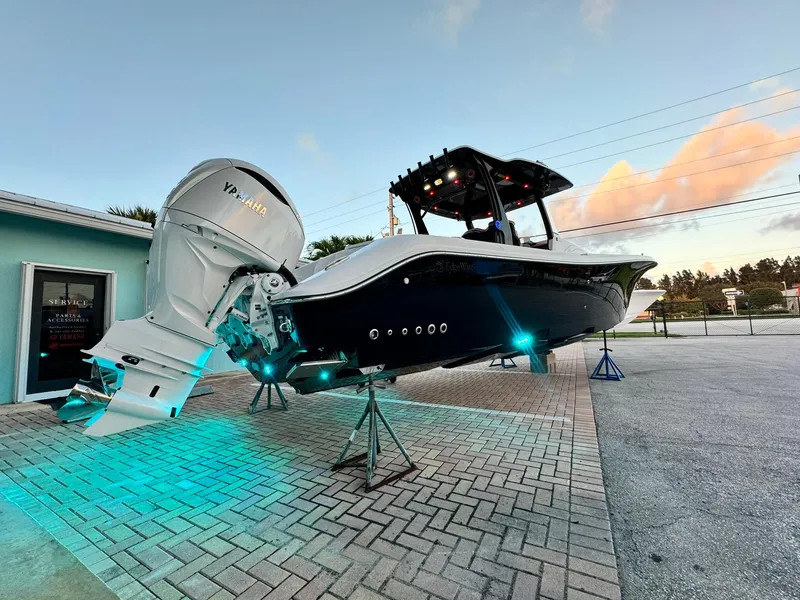 This is the most customized / optioned 370cc ever built! Featuring an all black hull, black pipe work and accents throughout, custom tan interior with black stitching, custom paracorded steering wheel, underwater lights including on the hull steps, marine matting, and much more.