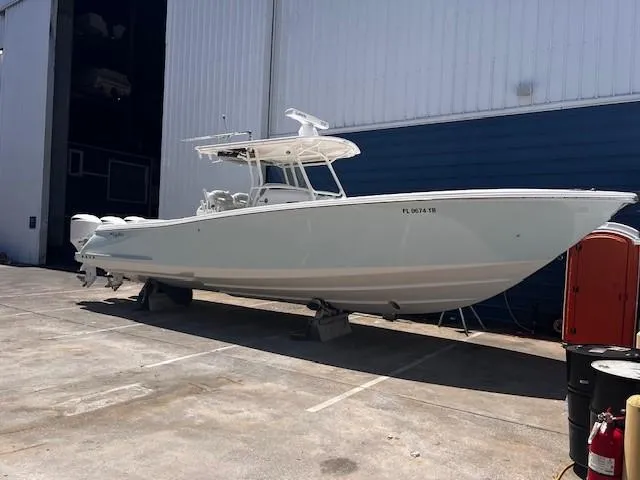 Offering our most impressive list of standard features and custom options, the 388CC is an incredibly rugged triple-engine boat that defines modern offshore performance for sportfishing boats. These sportfishing boats are perfectly tuned to unleash the power of Yamaha four-strokes, the race-inspired hull features a ventilated stepped bottom for reduced drag at higher speeds, a wider beam and sharper entry for more efficient, stable performance and easier planing over a wider range of speeds and sea conditions. Additionally, our SPI construction significantly enhances the handling, fuel economy, top speed and range of these sportfishing boats. From island-hopping with the family to long-distance fishing trips far offshore to an evening spent entertaining guests, there is simply no other sportfishing boats that can deliver this level of comfort, safety, ride and style. The owner has kept an open checkbook on vessel. In three years the owner has spent over 62k on upgrades and service and I have all the records. He has installed Optimus 360 joy stick and power steering, auto pilot and hold position on fishing spots. Fly by wire Shift, replaced all panel switches on the console. Replaced 2 way radio with a Garmin VHF. Replaced stereo with new Fusion BT stereo. Replaced both live well pumps as well as the other pumps. Twin Garmin 15 Chart Plotters with sonar and radar. Replaced the back seats and gunnel wall cushions. Replace radar dome. Replaced the Lenco trim tabs.Just did a full detail. Very clean vessel.