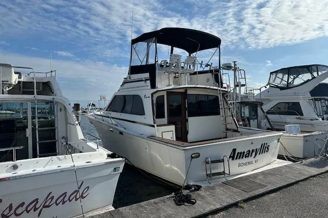 Introducing the stunning 1986 Egg Harbor 37 Convertible, a remarkable vessel that combines elegance with performance. This used boat boasts an overall length of 37.4 feet, showcasing a sleek modified Vee hull made of durable fiberglass, ensuring both stability and style on the water. Powered by twin Crusader 350 engines, each rebuilt in 2019, this beauty delivers an impressive cruising speed of 19 knots and a maximum hull speed of 29 knots, making it perfect for exhilarating outings. With only 300 hours on each engine, it promises reliability and power for your adventures. Inside, the Amaryllis offers two cozy cabins and a well-appointed head, providing comfort for you and your guests. This convertible boat is designed for those who appreciate quality craftsmanship and a smooth ride. Experience the joy of boating with the Egg Harbor 37 Convertible, where every journey becomes a memorable escape.