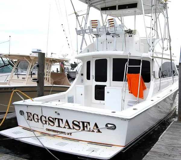 EGGSTASEA is an extremely well kept example of the popular 37 Egg Harbor Sport Yacht convertible. Powered with a pair of 420hp Caterpillar diesels that provide a comfortable and efficient cruise. Her deck layout is spacious, including the in-deck fish box, transom live well, sink and tackle station. Access to the engine room is via a door in the cockpit. An option normally only found on large sportfish. Her helm is equipped with Raymarine GPS, radar and sonar with room for an additional screen. The cabin will sleep 4 in forward queen berth and second stateroom over/under berths. She is equipped with a full head with standup stall shower, Dometic electric freshwater toilet and vanity with sink. Don�t miss this opportunity, she is a must see if you�re in the market for an extremely clean, economical and sharp looking boat with that legendary glossy Teak interior!