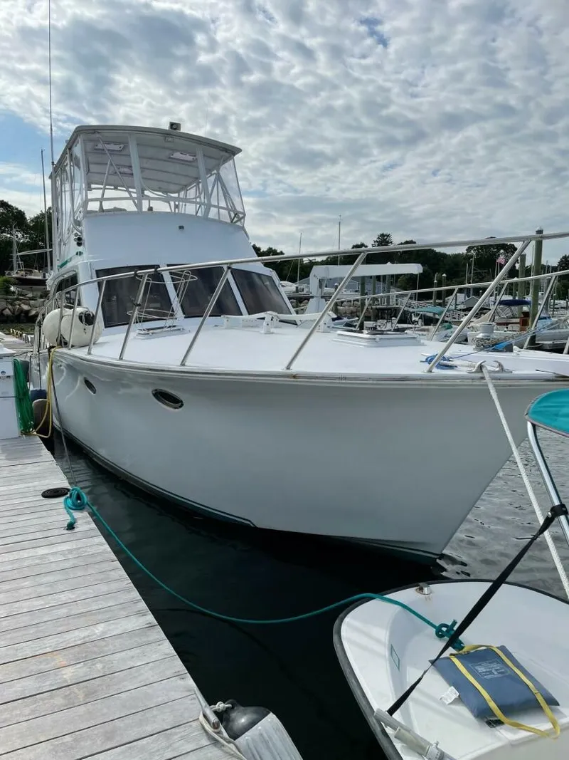 "Tradition" 1996 Egg Harbor 48 is built on the original molds from Egg Harbor by Cayman Marine. The Caterpillar engines were installed in 2004 and many upgrades have been made in the last 3 years. She is a classic design that turns heads for a reasonable price. Call to see her in Sales Tax free North Kingstown, RI.