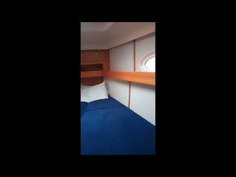 Vacuum infused multiaxial laminate with PVC foam core sandwich above waterline for thermo and sound isolation. First two outer layers impregnated with vinylester resin for superb protection against osmosis. Other layers laminated with isophtalic polyester resin for improved mechanical and chemical properties. NPG (Neo Penttyle Glycol) gelcoat is used for optimum mechanical resistance and mirror finish. Molded inner structure glued and laminated to the hull. The deck is vacuum infused multi-axial laminate, partly polyester - PVC sandwich construction for thermo and sound isolation. The deck is glued and bolted to the flange on the hull. The joint is protected with custom designed aluminum toe-rail.