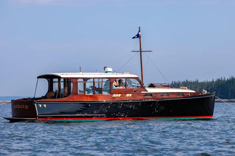 A familiar and beloved sight in Camden Harbor, CANDACE III has been under the mindful stewardship of Richard Stetson and Bridget Qualey for the past thirty-five years. Built by the Electric Launch Company (Elco) of Bayonne, New Jersey and designed by Irwin Chase, this Cruisette 39 embodies the beauty, craftsmanship, and grace of a bygone era - a true classic that continues to turn heads wherever she goes.